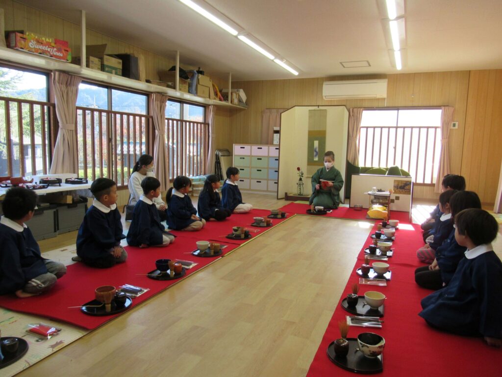 今日は茶道裏千家淡交会第一支部の伊藤先生に来ていただき年長児がお茶会をしました。