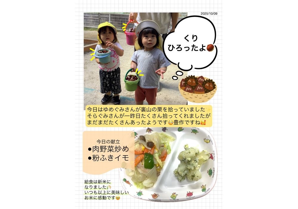 まこと学園の裏山には栗の木があります! お猿さんに気を付けながら毎朝栗拾いをしてくれています 木曜日におやつで茹で栗を食べました! 【まこと学園ホームページ】 こちらでは毎日更新しています まこと学園 人形劇のお知らせ 前の記事 まことVlog 次の記事