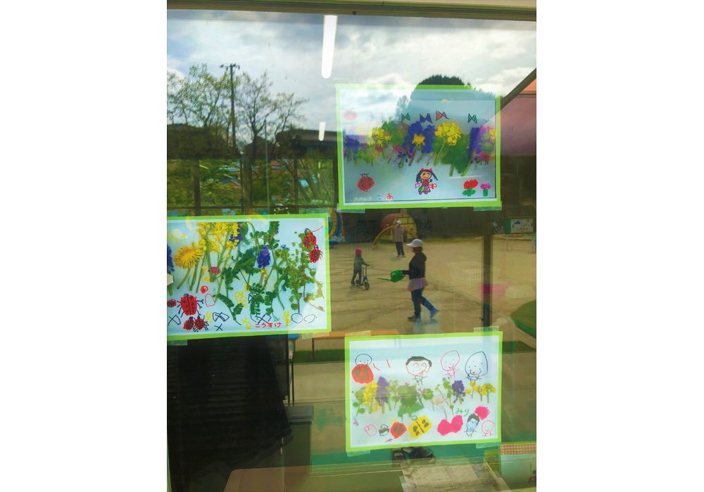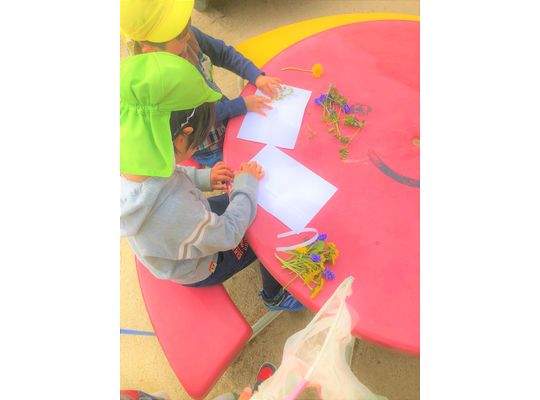 幼児さんたちで近くの神社に自然探索に行ってきました。道すがらいろんな花が咲いており、もって帰って押し花ならぬ貼り花を作って絵を描き足していました。いっぱいモノを作って造形展でおうちの方に観てもらおうね。でも花は枯れてしまうのでカラーコピーで保存したようです。