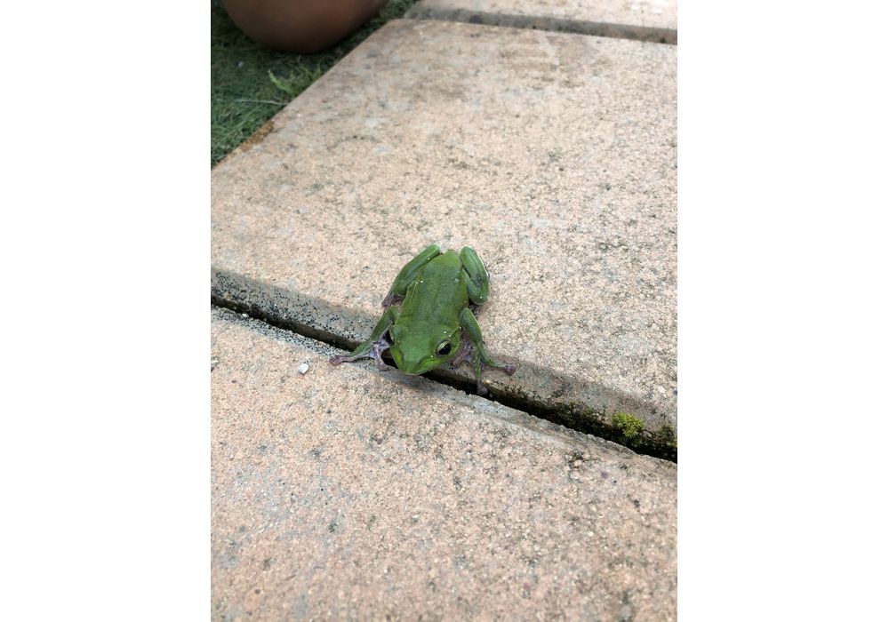 子ども達にもてあそばれてぐったりしている蛙をパチリ。