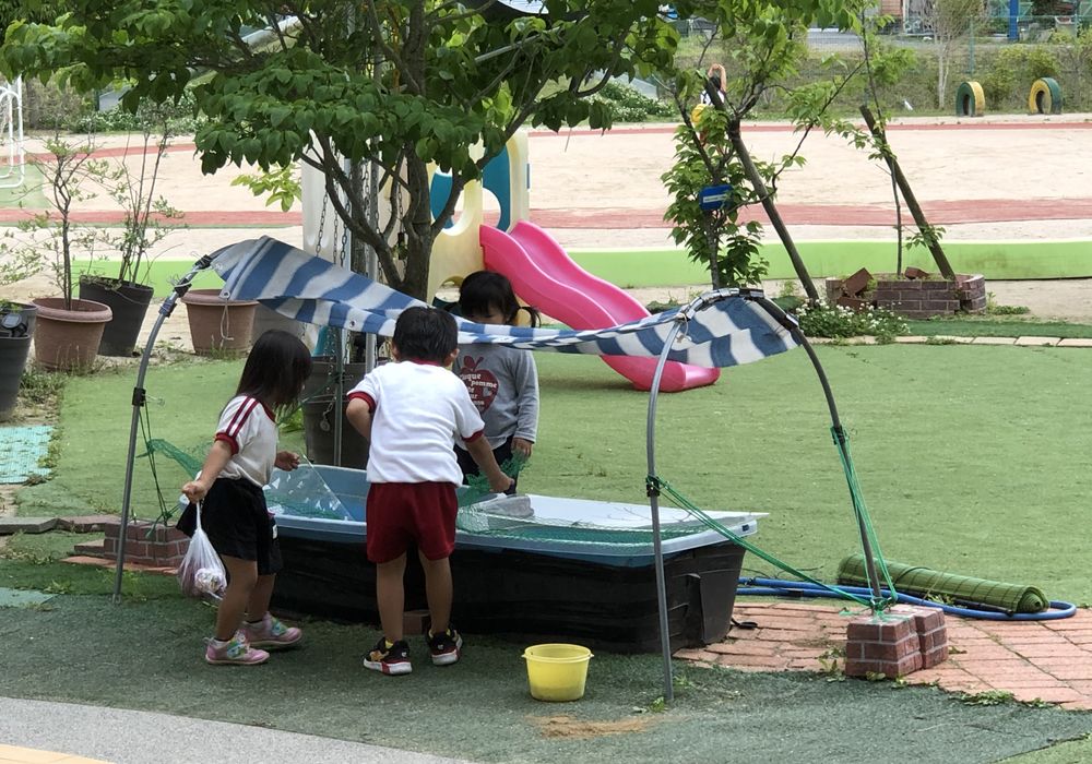 夕刻、メダカの水槽を先生たちが掃除してくれていたとき、