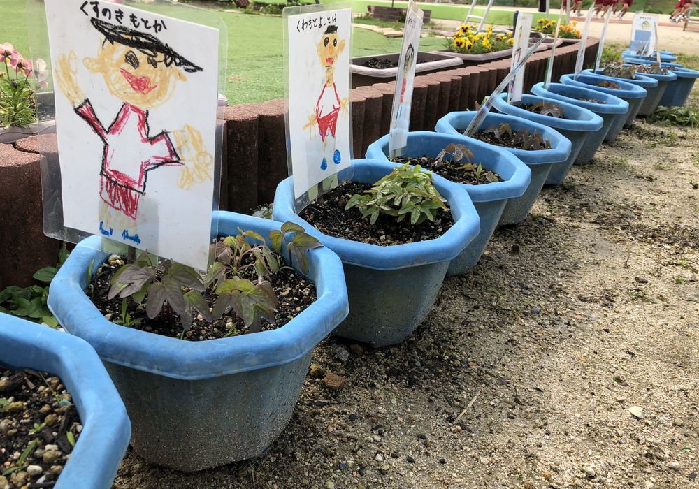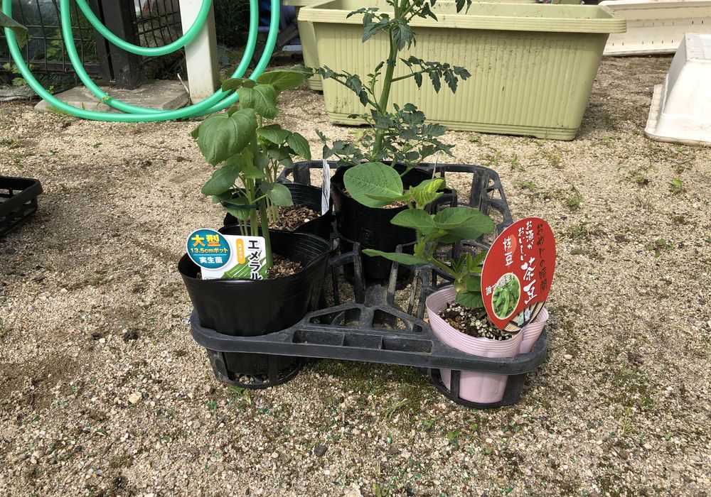 アサガオの双葉も大きくなり、真ん中から本葉が出始めました。