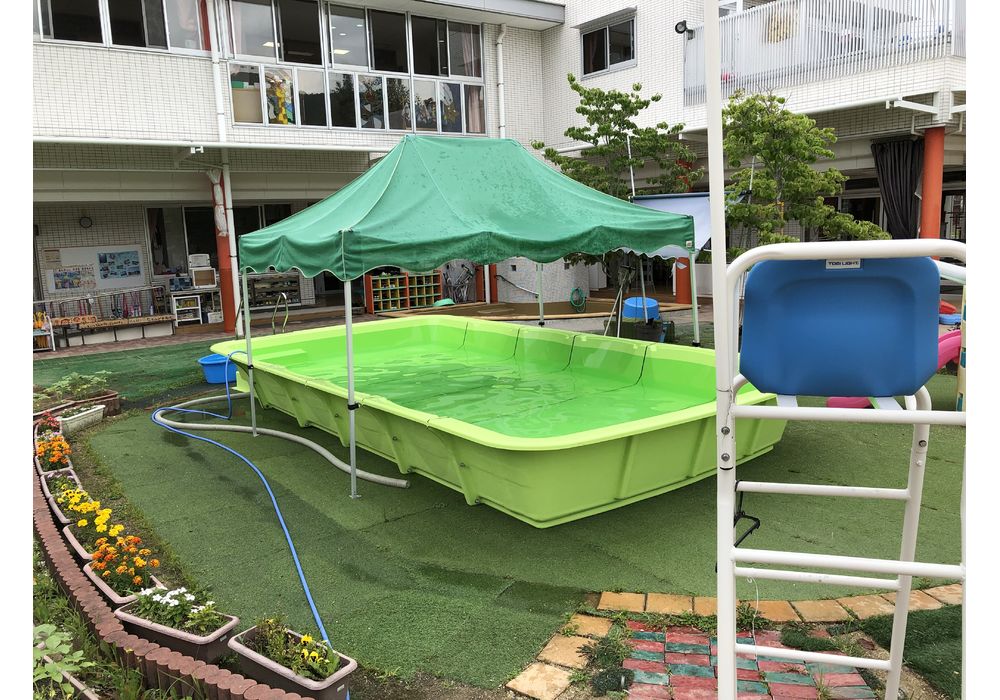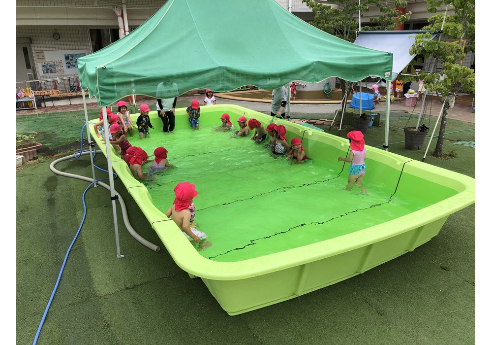 プールでの水遊び開始