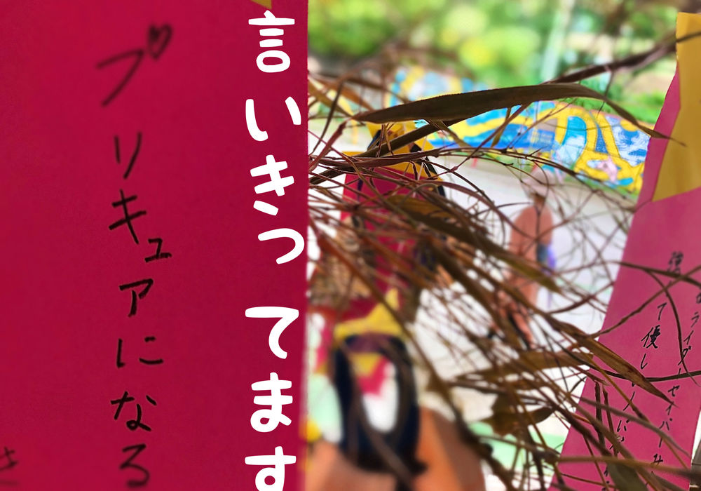 明日は七夕。七夕飾りもお目見えです。時代を反映したものも多かったです。お母さんの願いも叶うといいですね。