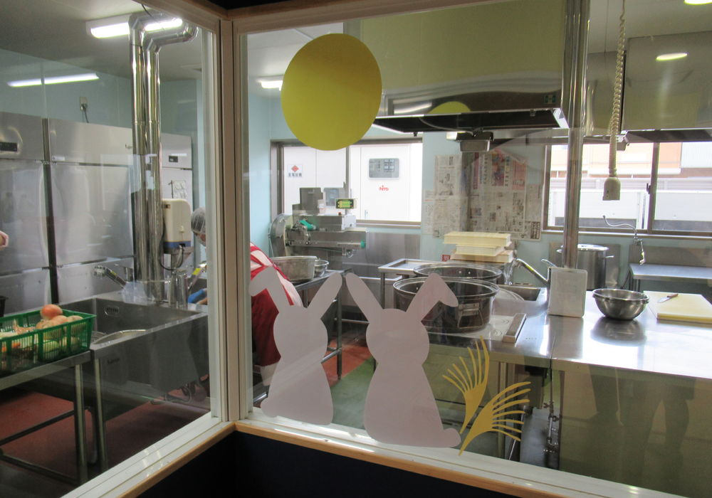 ひかり学園の給食室は子どもたちからよく見えるようになっています。給食室もお月見仕様です。