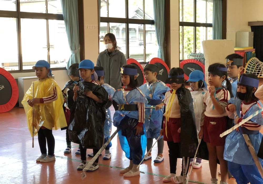 代表して年長・すみれ組さんが贈呈式に出席してくれましたが、なんだか様子が変です。