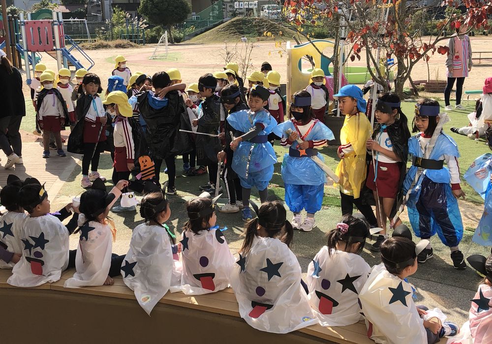 帰園後、クラスごとに園長室へ乱入していたずらは終了。笑顔でハロウィンを満喫したようです。
