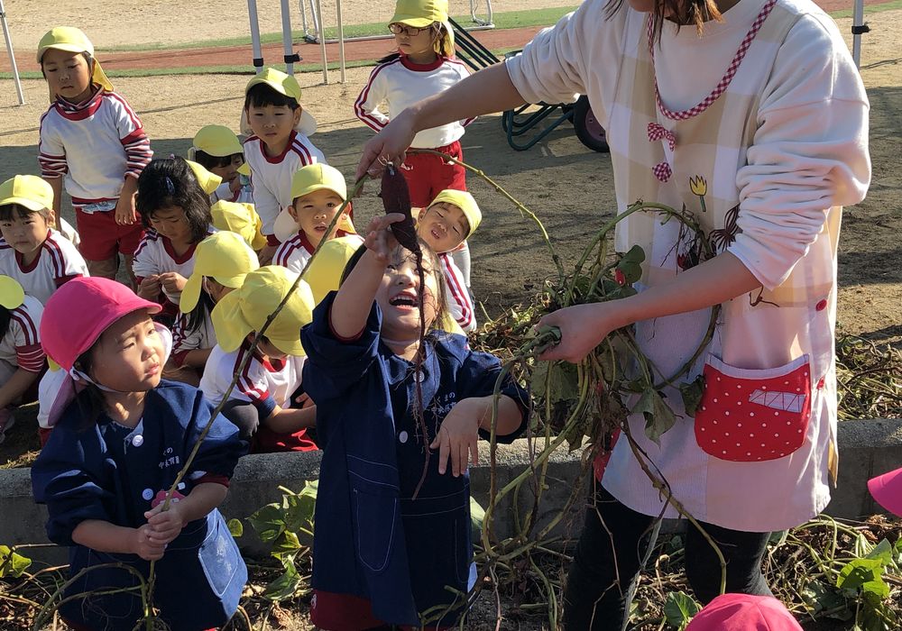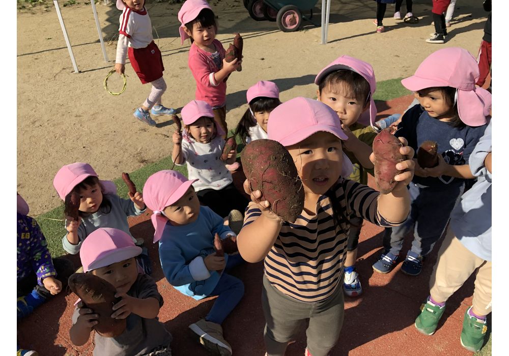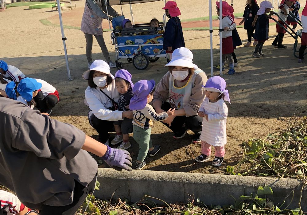 今日は園庭の畑でお芋ほり。