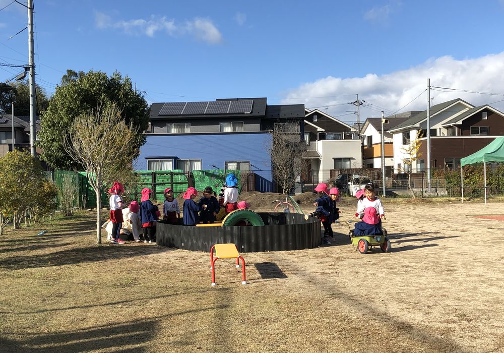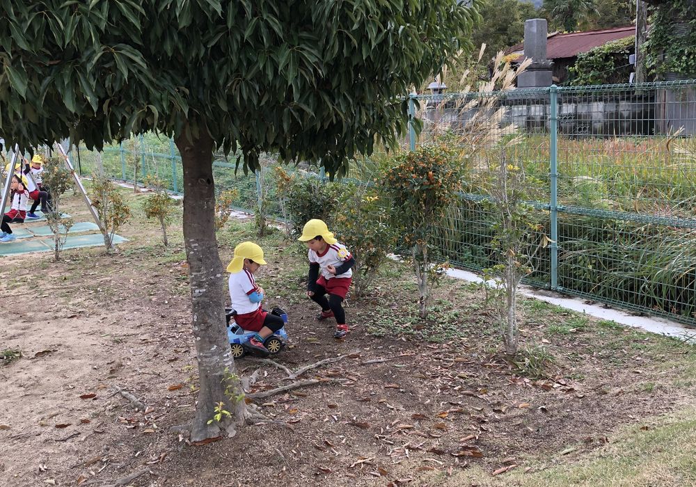 先生たちも我が園の「広い広い園庭」を最大限に生かすために、遊びの種まきを続けてくれています。