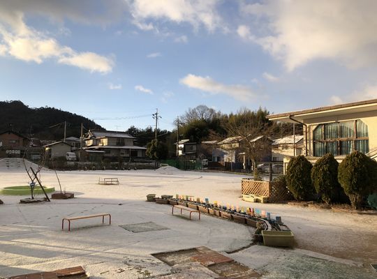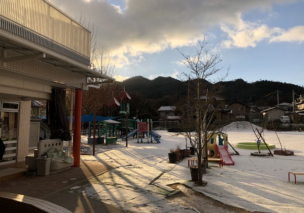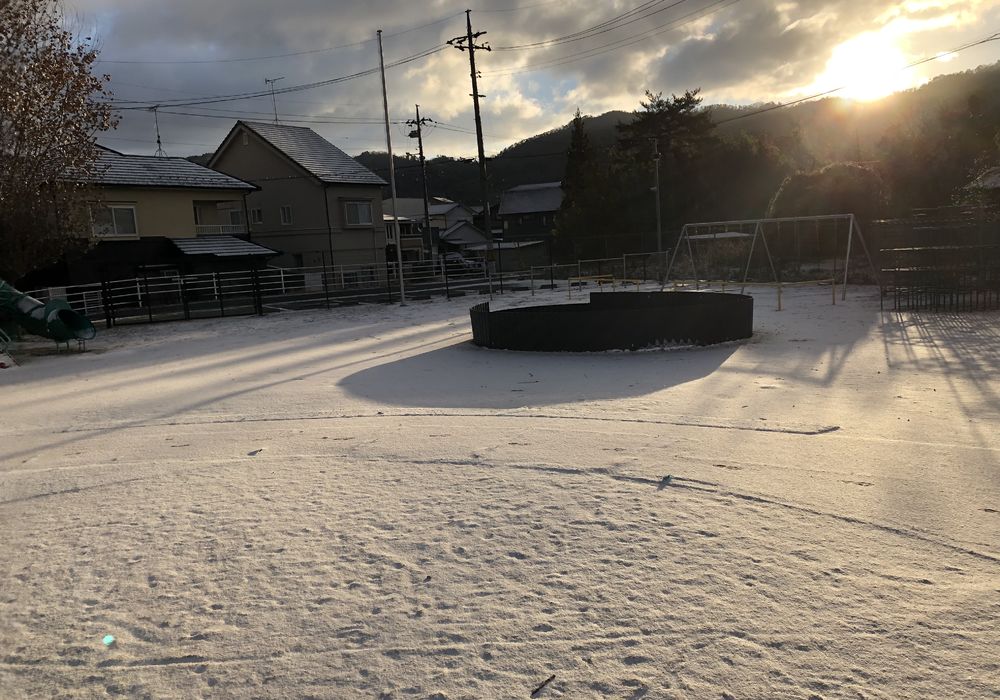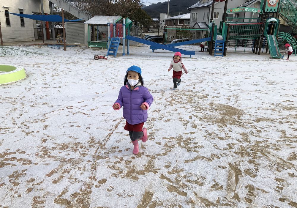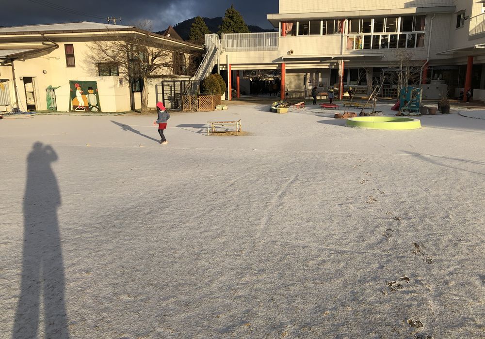 冷え込んだ朝、広い広い園庭が真っ白になりました。