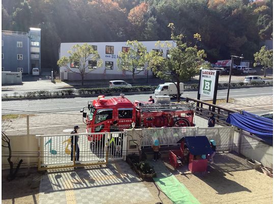 訓練が終わったら、クラスで順番に消防車を近くで見せていただき、みんな大興奮でした?