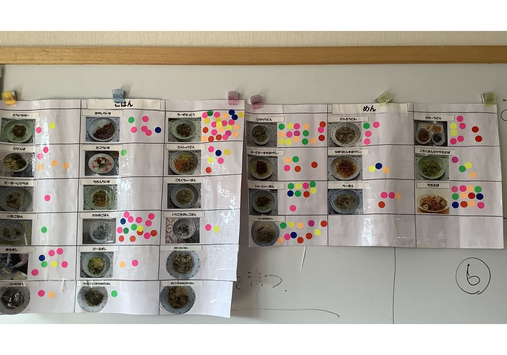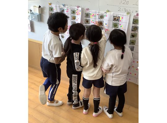 今日は3月のメニュー選びをしました。自分の好きなメニューを選んでシールを貼りました。