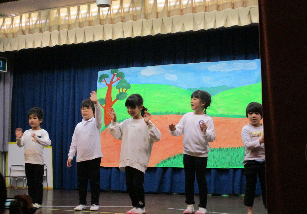 昨年はコロナ禍で年長さんだけの生活発表会でしたが、今年は年少、年中、年長の3クラスを保護者の方をお招きして開催することができました。ご観覧ありがとうございました。それぞれのクラスの特徴、園児さんひとり一人の個性が発揮されたいい発表会でした。子どもの力ってやっぱりすごいです。みんなよかったよ。ありがとう。本日の様子の動画は保護者専用ページにも載せていますので、ご観覧いただけなかった方もご覧ください。