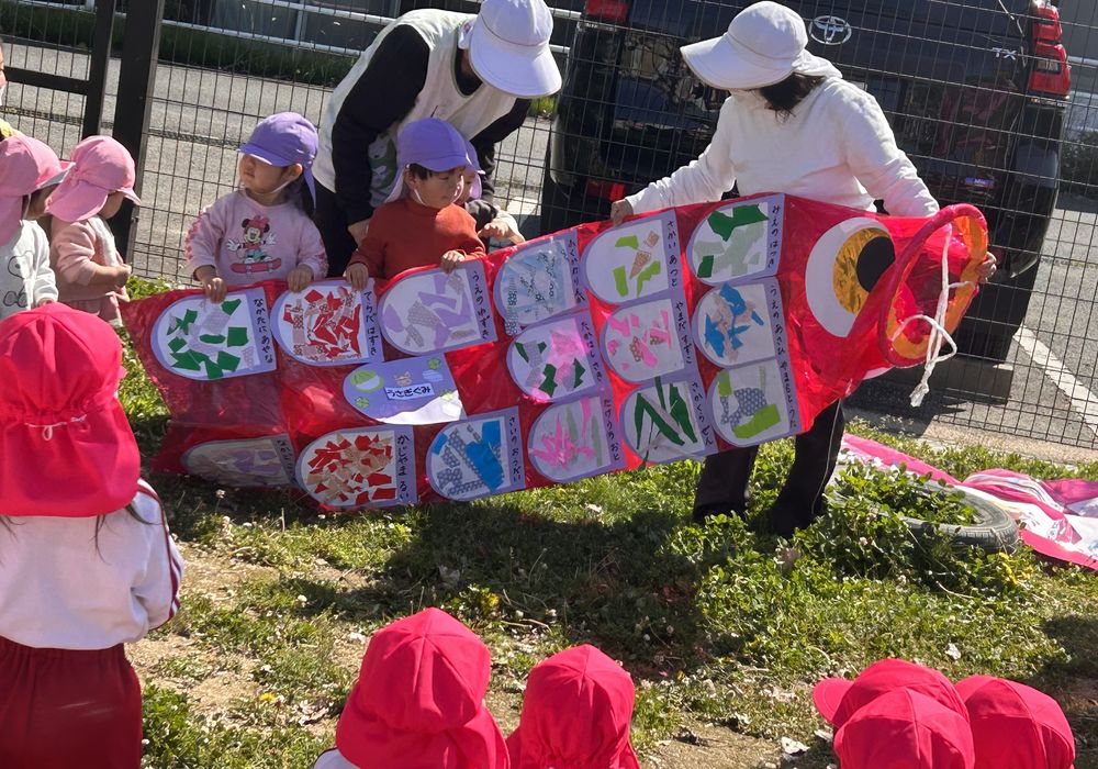 子どもたちが作ったこいのぼり、お空を気持ちよさそうに泳いでます。 各クラスうろこづくりでは、お絵描きや絵具あそび、指先を使って折り紙をちぎってはったりなど今、子どもたちが楽しんでいることを行っていました。 はつかみこども園 でっかいこいのぼり 前の記事 まこと学園 今週の給食?? 次の記事