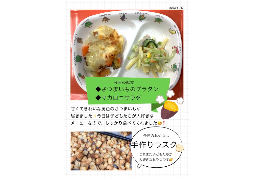 急に気温が下がり、温かい給食がより美味しく感じるようになりました?? 子どもたちは寒さに負けず外で元気に遊んでいます?給食もしっかり食べてくれています?? まこと学園 ホームページ こちらでは毎日更新しています? はつかみこども園 いもほり 年長さん 前の記事 まこと学園 今週の給食? 次の記事