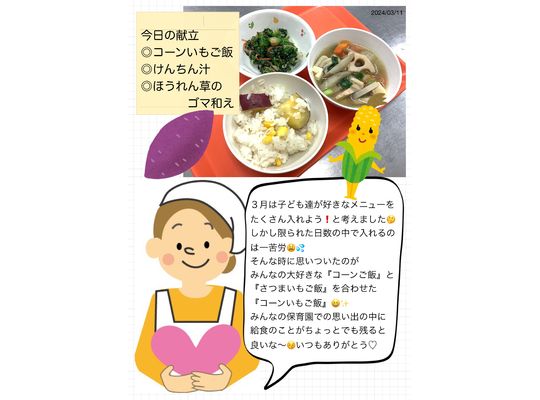 卒園式まであと一週間? まだまだ年長にじぐみさんのリクエスト献立が続きます。。。? 【まこと学園ホームページ】 こちらでは毎日更新しています? はつかみこども園 地域の日 前の記事 まこと学園 今週の給食????? 次の記事