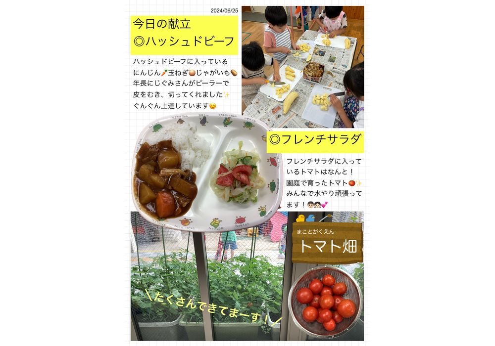 雨が多い一週間でしたが、園庭に出た日は楽しそうな声が給食室まで聞こえてきました。 園庭でできたトマトを収穫しては持ってきてくれる日々です?? まこと学園 ホームページ こちらでは毎日更新しています? はつかみこども園 幼児参観日2024 前の記事 はつかみこども園 七夕2024 次の記事