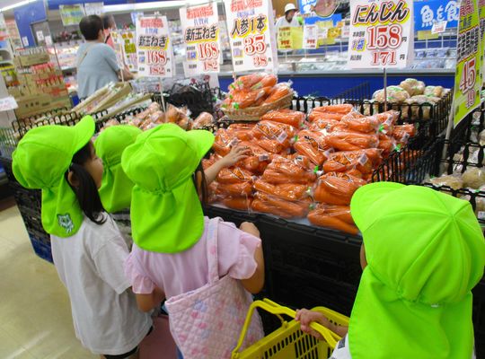 お泊り保育(年長サマーキャンプ)の食事の材料の買出しに、年長さんたちがスーパーに行ってきました。それぞれの班がメモを片手に目的の食材を、あーでもない、こーでもないと言いながら探していました。園に帰ってから付け合わせをしてましたが、無事種類、個数はぴったし合っていました。先生があとから買い足しにスーパーに行かなくてよかったですね。