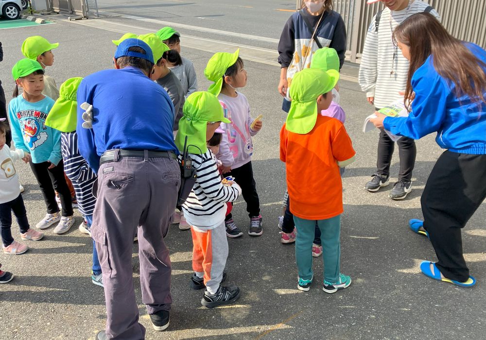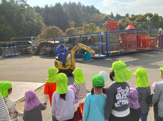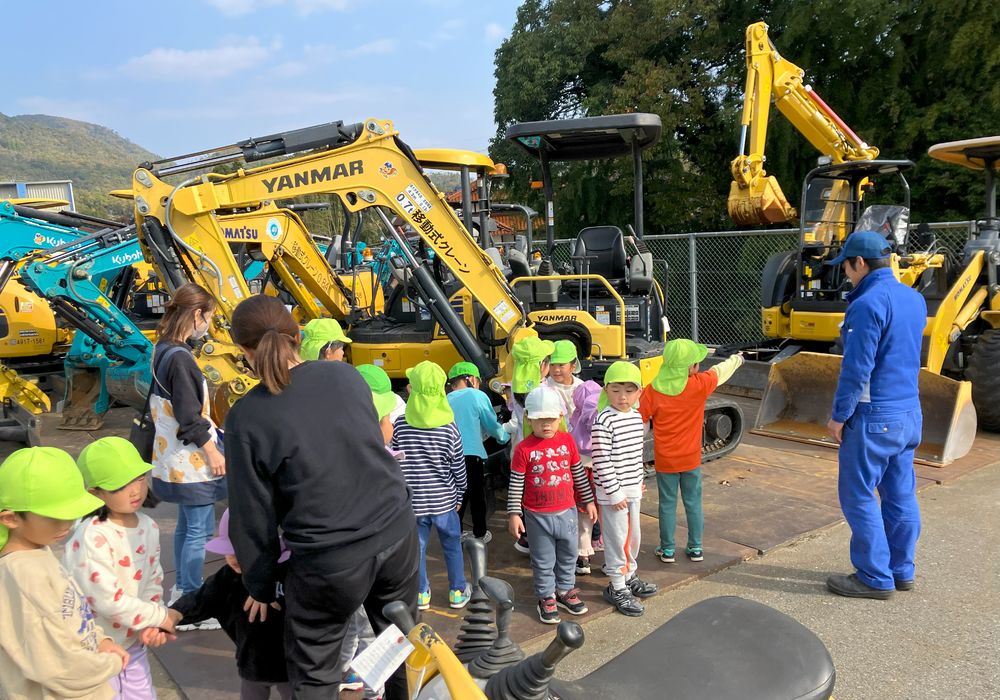 今日は散歩で近所の重機リース会社の近くに行ってきました。柵の外からショベルカーなどを見て帰る予定でしたが、会社の方にお願いしたら敷地内で見せていただけることになり、園児さんたちは大喜び!さらに実際に重機を動かしていただきさらに大喜び!!中にはこれは〇〇いう名前と詳しい園児さんもいてビックリ!!!帰りにはお土産までいただきビックリ!!!!急なお願いにも関わらず、お忙しい中園児のために良くしてくださってありがとうございました。
