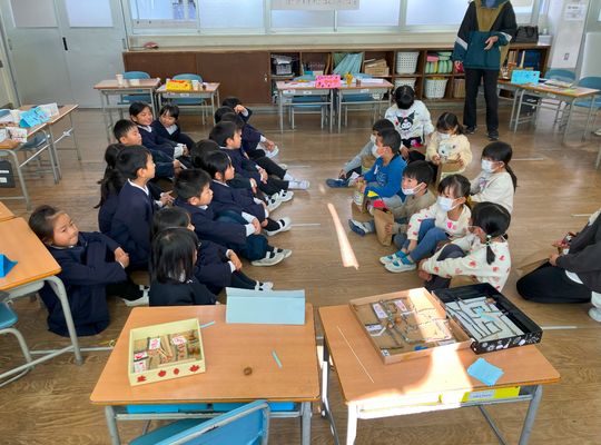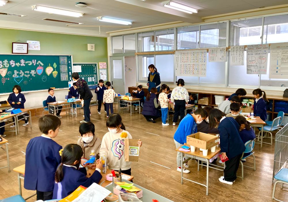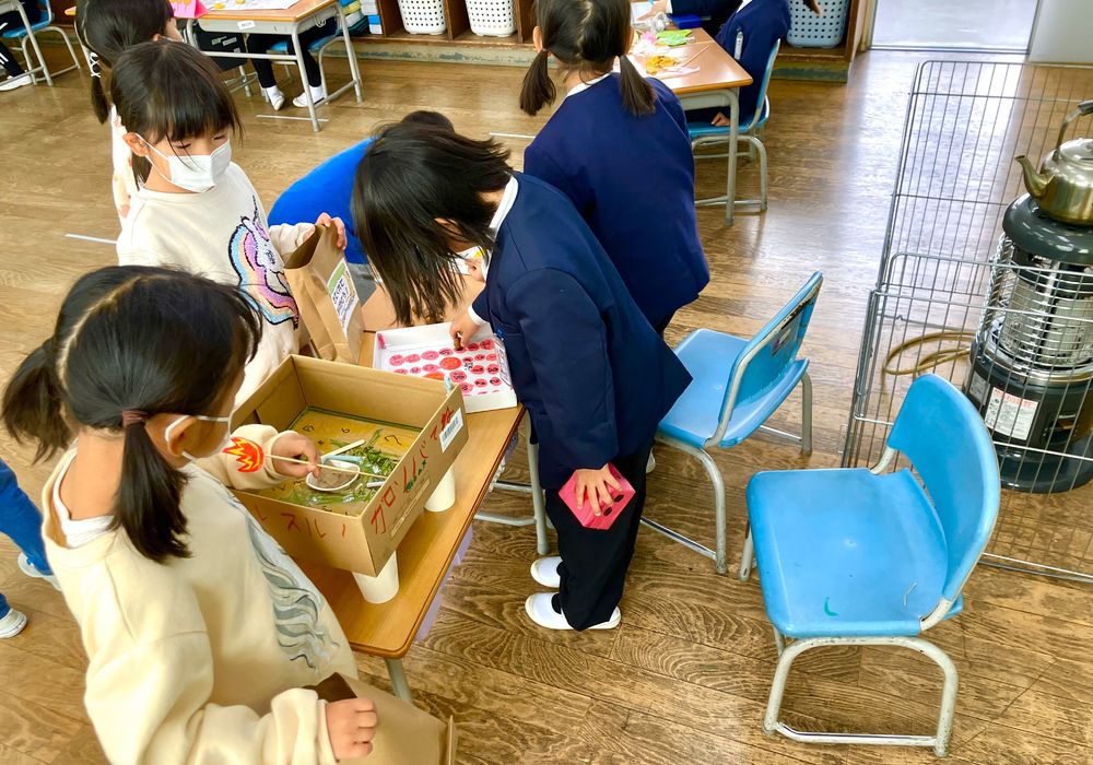 年長さんが小学校を訪問し、1年生主催のおもちゃまつりに参加しました。昨年まで一緒に過ごした懐かしい1年生と会えてとても嬉しそうでした。1年ですごくお兄さんお姉さんになっていました。来年の楽しみがまた増えましたね。教室での活動の後は、グランドで小学生のお兄さんお姉さんたちと遊んで帰りました。