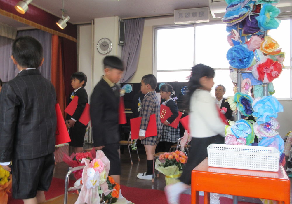 涙から始まりました。感性豊かな子どもたちに育ってくれたなとしみじみと思いました。(涙なしが感性豊かでないということでは決してありません。誤解のないように)しかし、第二部のお祝いの会になると普段の明るい元気な卒園児さんに戻っていました(さすが)。3つの大切(命を大切にしよう、道具を大切にしよう、ともだちを大切にしよう)を心に小学校でも自分らしく学校生活を送ってください。保護者のみなさまともども幸せな人生を歩まれますことをお祈りいたします。