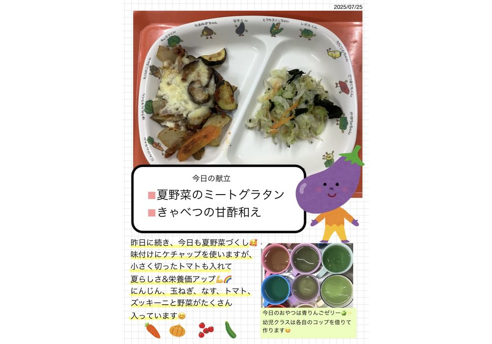 お泊まり保育が無事終わり、年長さんは疲れが出たのか、お休みが多い週でした。 どのクラスも暑さによる疲れも出てきているようなので、水分補給をしつつ栄養面でもサポートを頑張りたいと思います?? まこと学園 ホームページ こちらでは毎日更新しています? ひかり学園 園庭開放〜給食試食〜 前の記事 まこと学園 今週の給食?? 次の記事