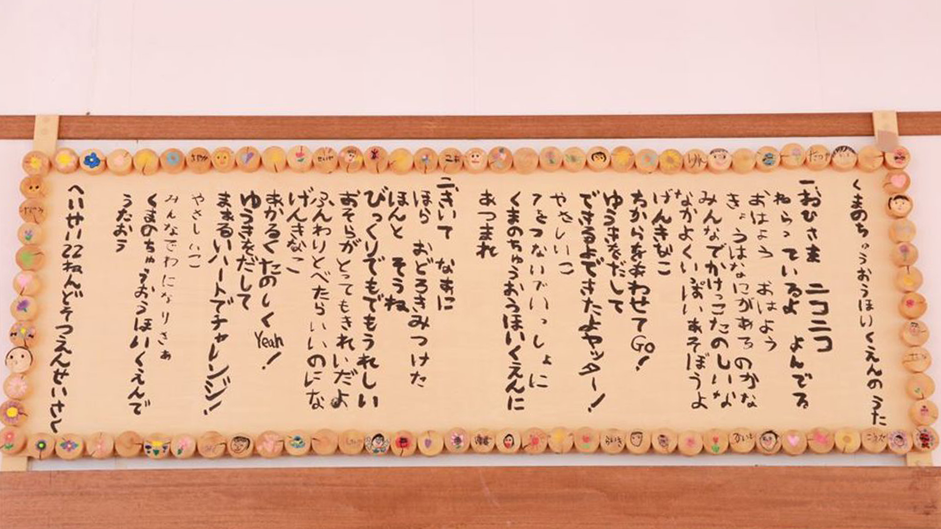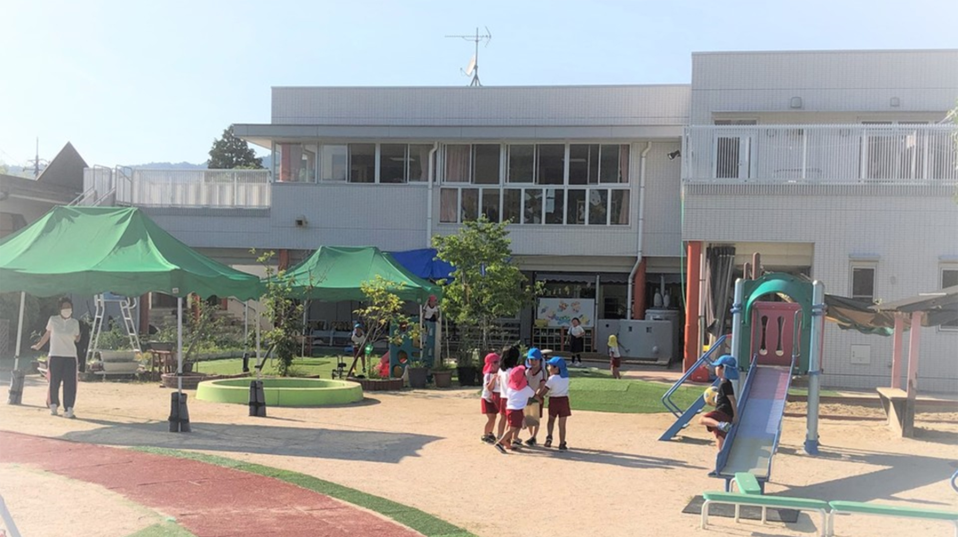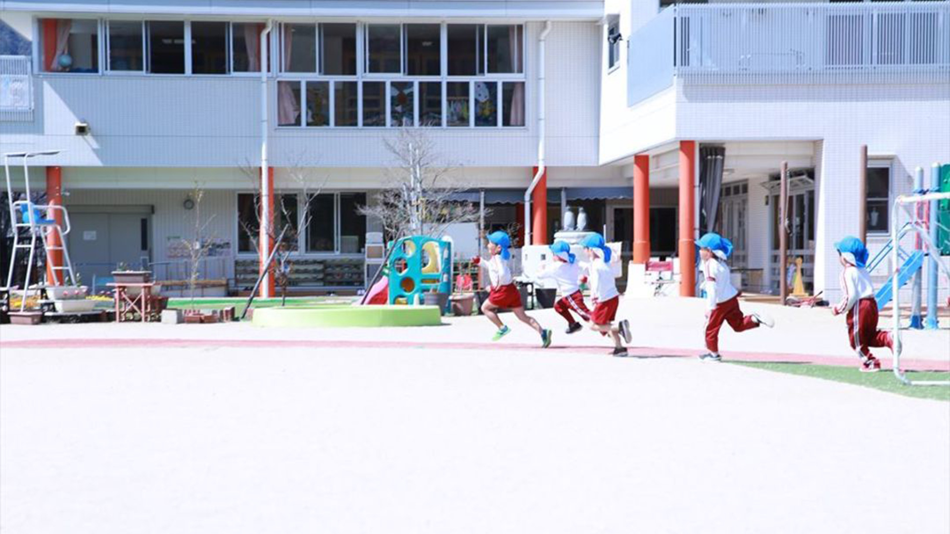 くまの中央保育園は、熊野町の中心部にありながら、広い園庭と遊戯室を備えた定員90名の小さな保育園です。