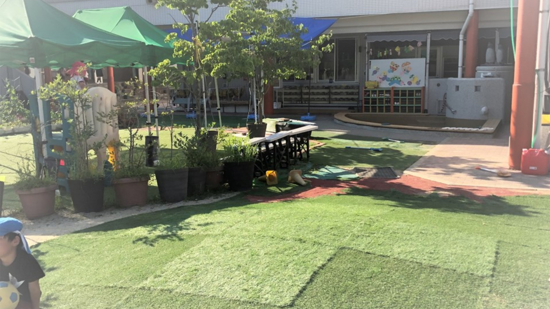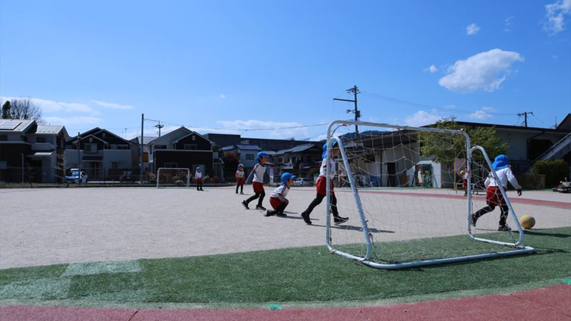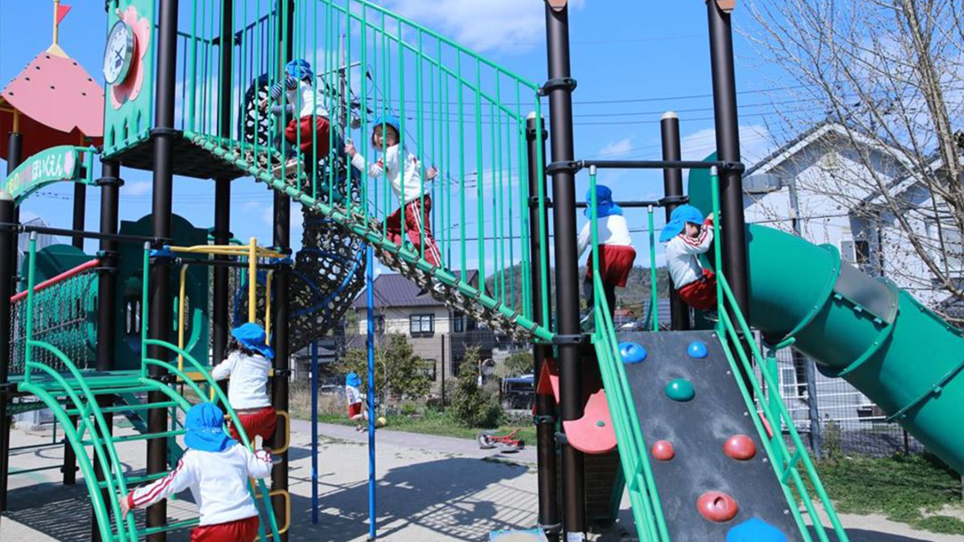 くまの中央保育園は、熊野町の中心部にありながら、広い園庭と遊戯室を備えた定員90名の小さな保育園です。