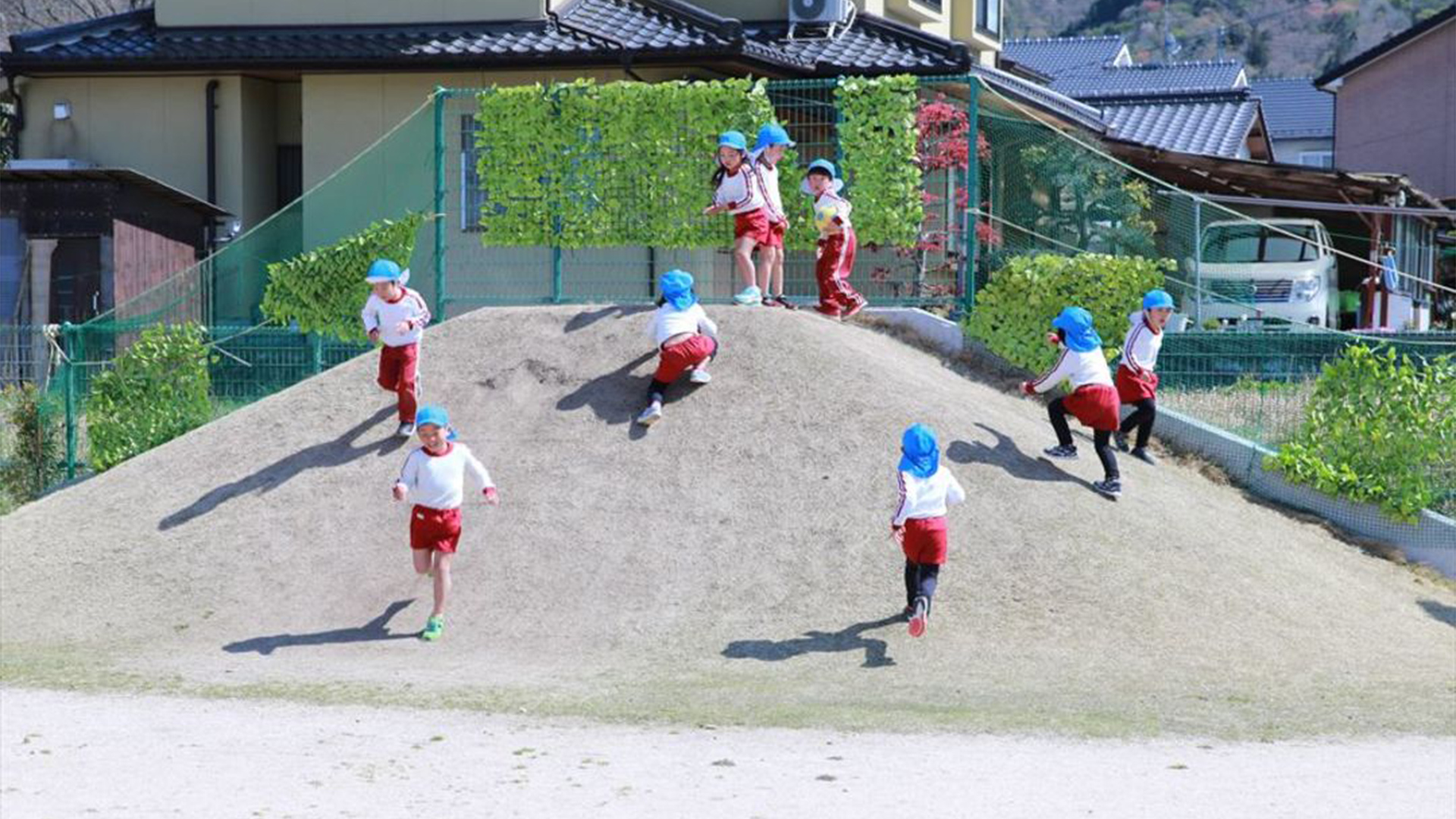 この自然に恵まれた環境で、思いきり遊び、心も体もすくすく育つ、「のびのび保育」と「優しい心」を大切にしています。
